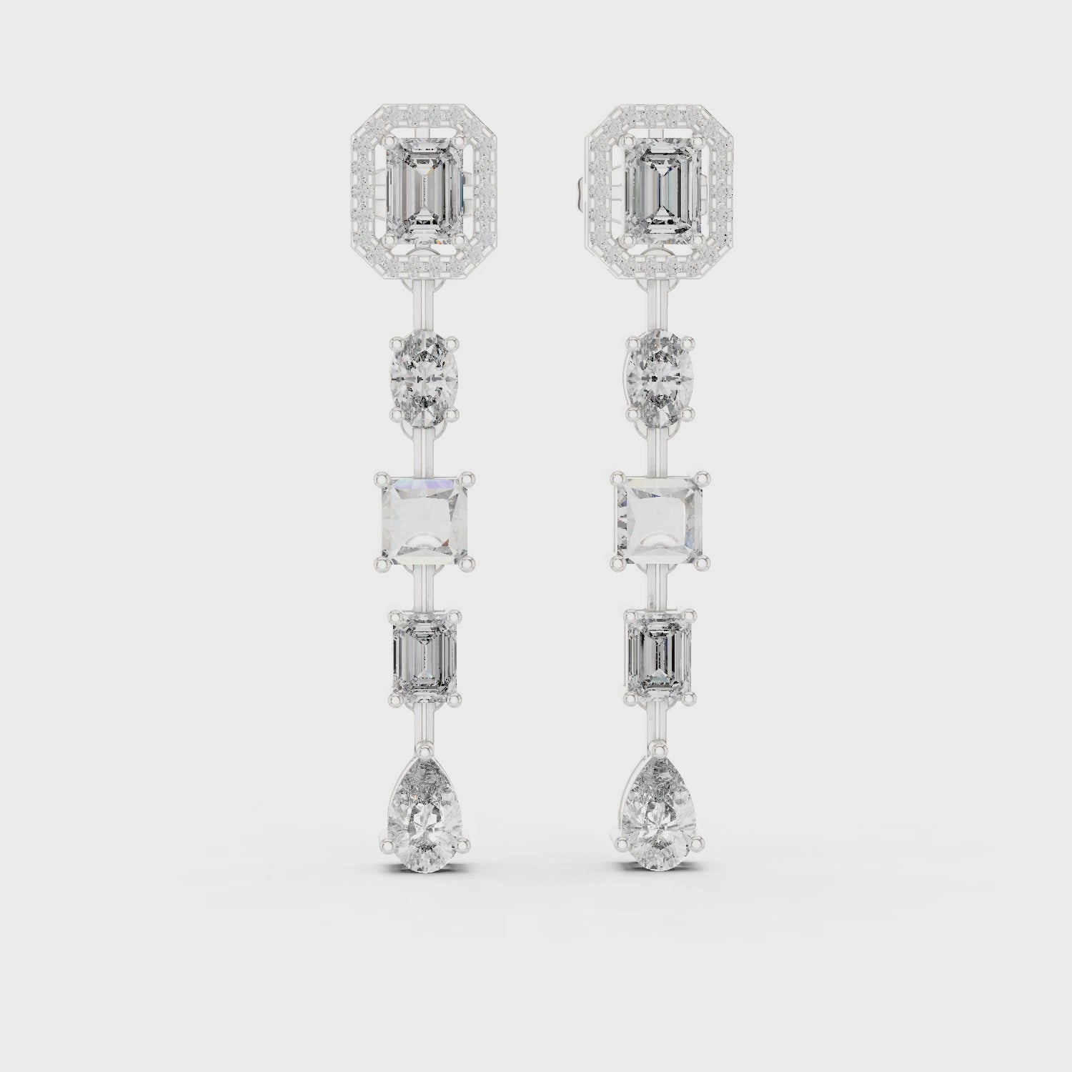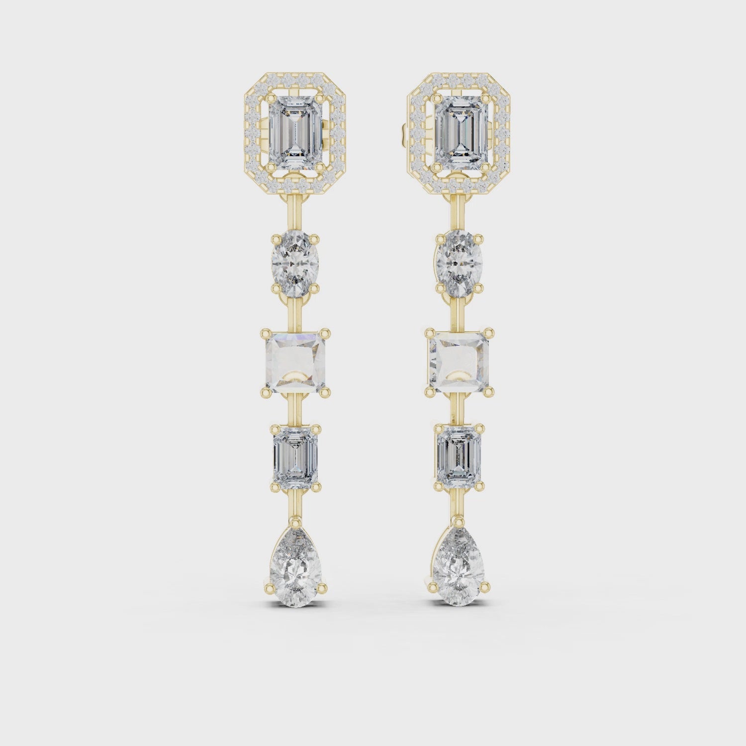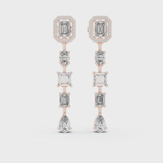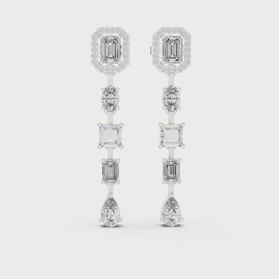 These emerald drop lab grown diamond statement earrings are designed to deliver timeless glamour with modern luxury. Featuring emerald-cut diamonds framed by delicate halos and accented with round brilliant diamonds, the elegant drop design adds graceful movement and unmatched sparkle to every look.